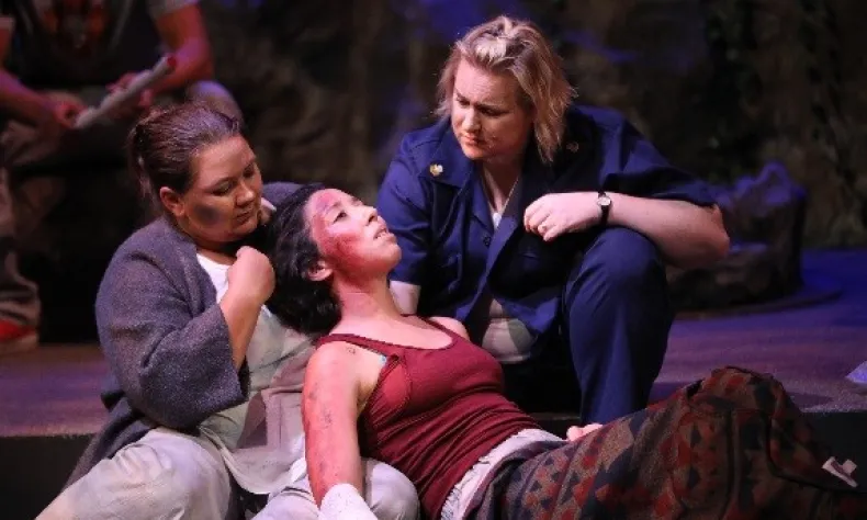 Based on the rabid Redwood Valley Complex fire, which wreaked havoc on over three-hundred homes while destroying 35,800 acres in 2017, act one is present-day Mendocino County where characters struggle to make sense out of the horrors in which they have awoken to. There is the nurse, in scorched scrubs, plagued by the loss of a stranger; the dogmatic veteran, seeking a farm that used to be; and the young visionary recollecting over forgotten cultures. These colorful, authentic characters coupled with lines that echo in the minds of the audience, propel the play to do exactly what drama does best: provoke.